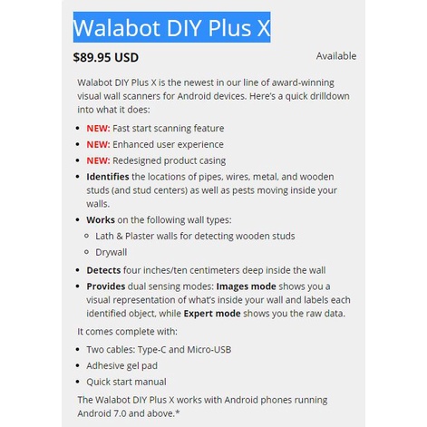 We appreciate you taking the time out. Walabot DIY Plus X is the. The Walabot DIY Plus has an additional feature that allows it to detect objects in lath and.